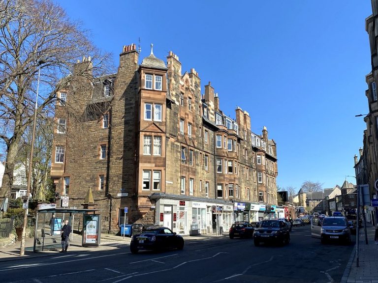 I carried on via Balgreen and Murrayfield to make my second ‘first visit’ of the day – if you see what I mean – to an Edinburgh public park: in this case, Roseburn. Having then crossed the busy A8 (Corstorphine Road), I was soon back on a more conventional riverside path and passing under the North Edinburgh cycleway. I reached the back entrance to the Modern One gallery, saw the rather scary stairway up to Magdala Crescent, and switched to the left bank for the approach to Belford Bridge, my selected end point for today. Why Belford Bridge? Simple: it’s located just a short distance from where I live.