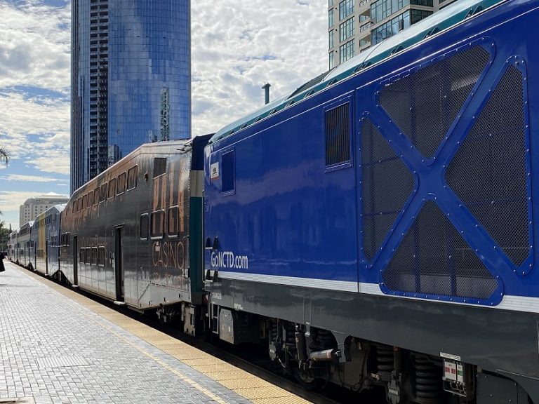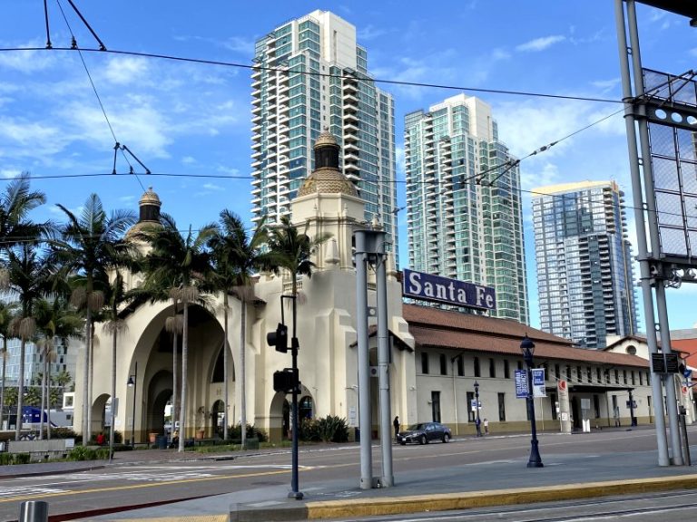 Bruce was working Boston-time half-days until Thanksgiving, which meant 0530-0900 Pacific – clearly an alarm was essential! At the end of his stint we had a Starbucks breakfast in the room, and this turned out to have the tastiest Starbucks food that I’d eaten in quite some time. After showers, we set out to walk to Santa Fe Depot, the city’s main station, using a route that zigzagged through downtown.