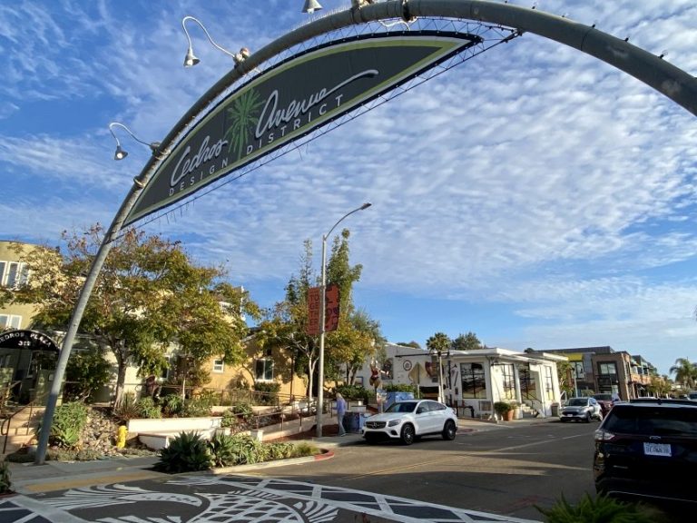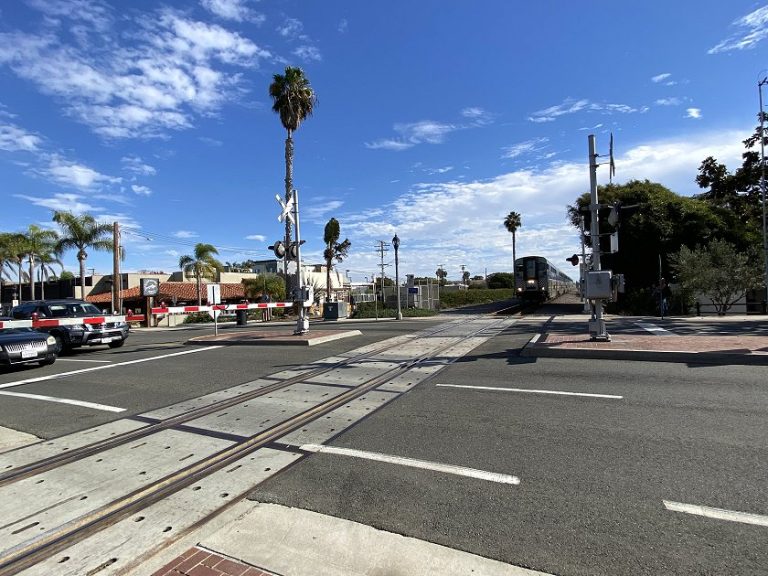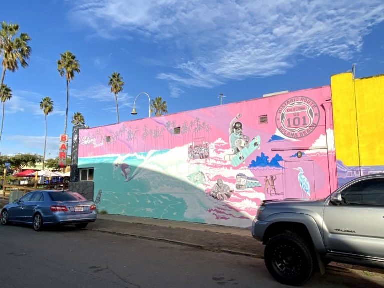 When we felt it was time to move on, we boarded a southbound train and travelled just a couple of stops to Solana Beach, which like Carlsbad lies on Hwy 101. We had a brief stroll around in the weakening sunshine, taking in Fletcher’s Cove and the Design District.