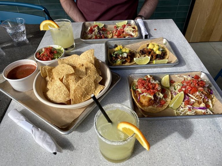 Carlsbad was founded as a spa resort. It is named after another spa town, which Bruce and I visited in 2014: Karlovy Vary (formerly Karlsbad), in Czechia. Carlsbad, CA is now better known for its outlet mall (which I once visited) and for Legoland (which I have no plans to visit). Today was about enjoying the train rides along the Pacific coast and seeing the destination itself. The weather was fabulous – I believe we were in shorts – and our wanderings were punctuated by a scrumptious, al fresco Mexican lunch.