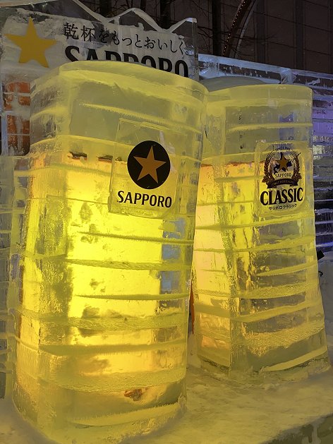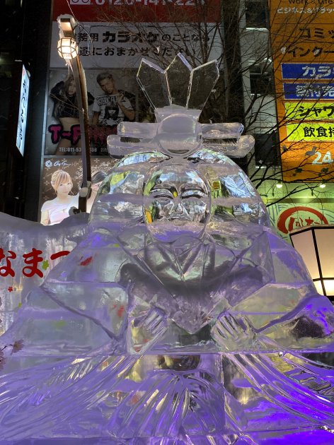 Later, we had soup curry served with rice at a place called Sho-Rin II. I had never previously associated Japan with curry, but it turns out that it’s a Hokkaido speciality that originated in Sapporo. Tonight’s Snow Festival venue was our very own Susukino, the second most popular site, featuring much smaller – but far more intricate – ice sculptures. We were pretty much on the doorstep of our hotel when we decided we were done, this being precipitated (no pun intended!) by the arrival of some fairly wet, sleety snow. Before diving inside for cover, we visited a 7-ELEVEN and picked up a crazy white-bread sandwich filled with strawberries, custard and whipped cream. The thing is, it turned out to be MUCH nicer than it sounds! To use a phrase that featured in the story a few days back: Only in Japan! ![]()